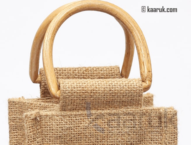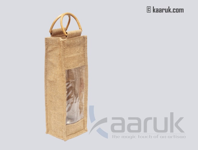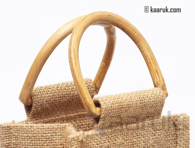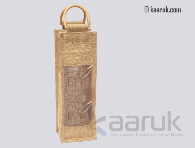 Eco-friendly jute wine bottle with cane handles Holds:1 bottle Color: Natarul Care:Wipe With Soft Dry Cloth After Using